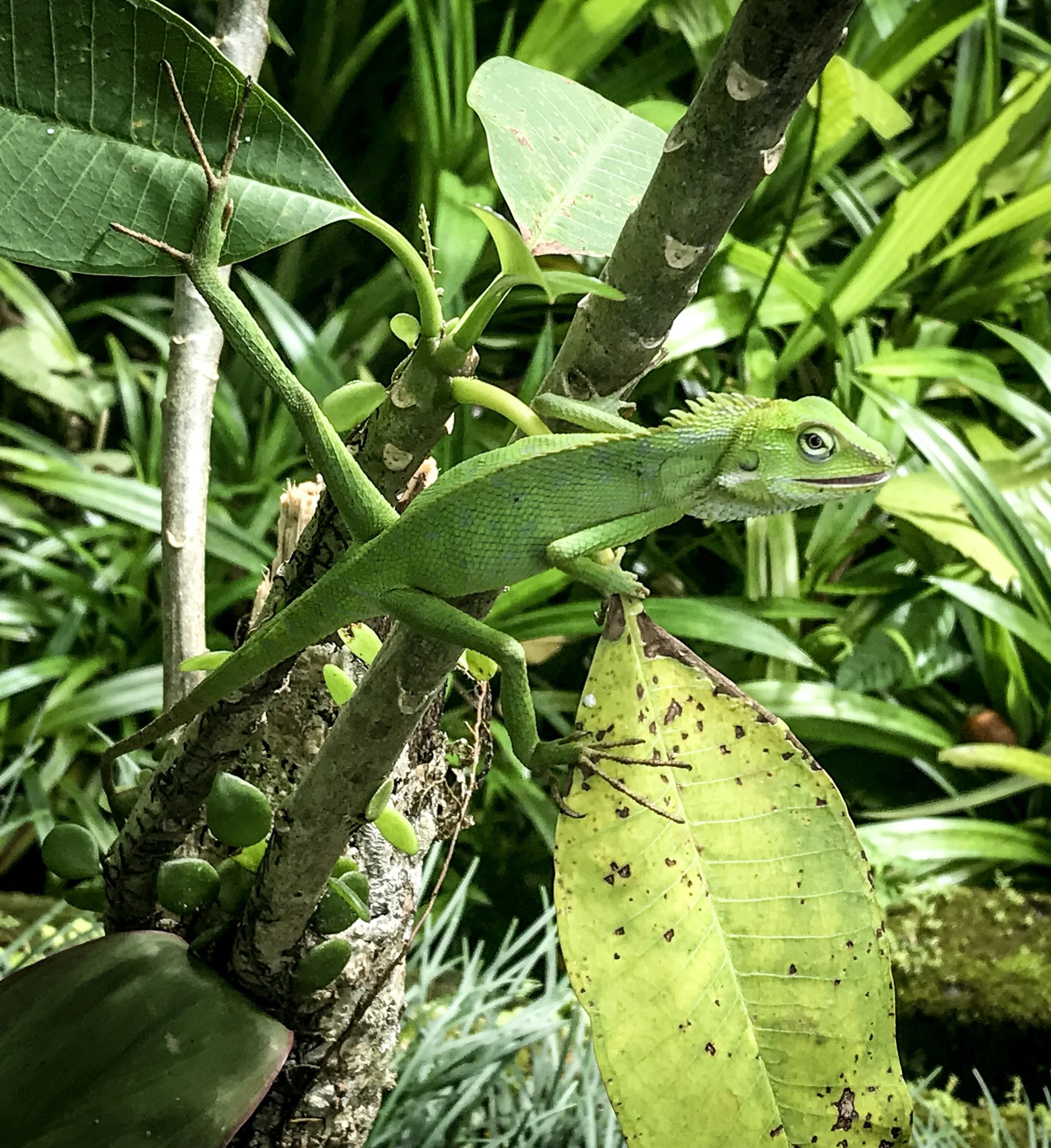 Pretty amazing quality pix you can get from an iPhone7s with the basic Adobe-Lightroom app installed. Caught this guy at breakfast in Ubud, Bali. He leapt like an olympic super frog. I did not know Chameleons had that skill prior.