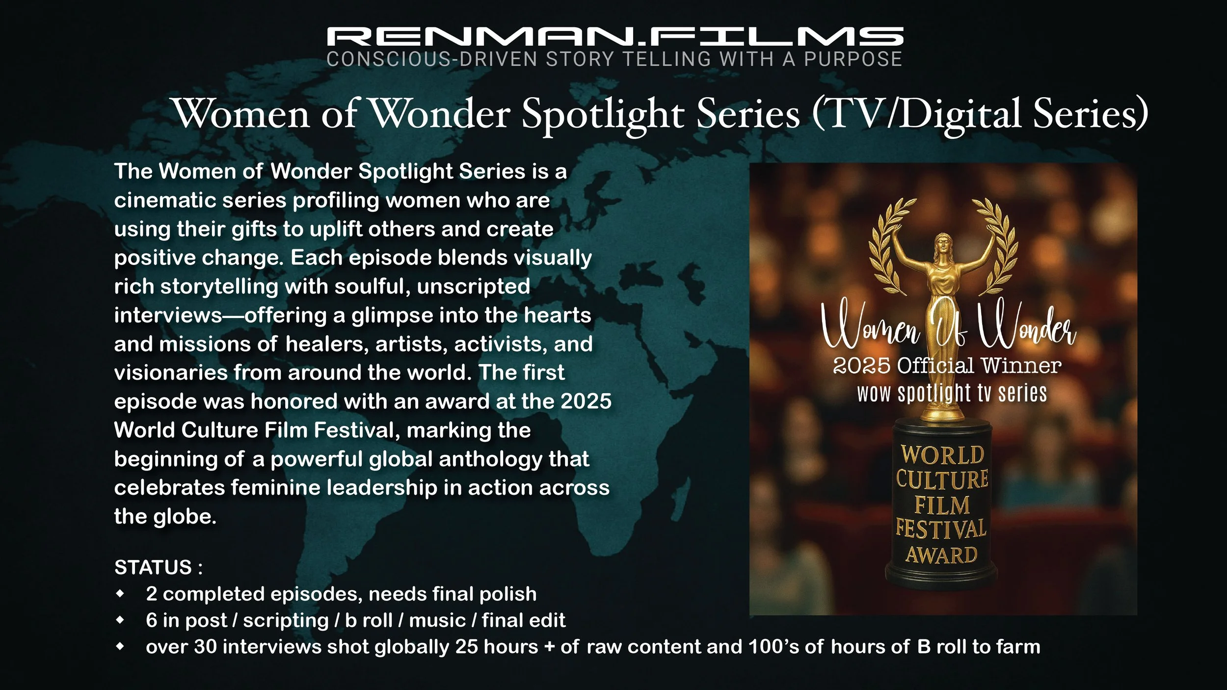 “2025 marks a bold new chapter for RenmanFilms. With a slate of powerful, purpose-driven projects in motion, we’re bringing heart, grit, and cinematic artistry to the forefront. The stories we tell are more than films — they’re movements.